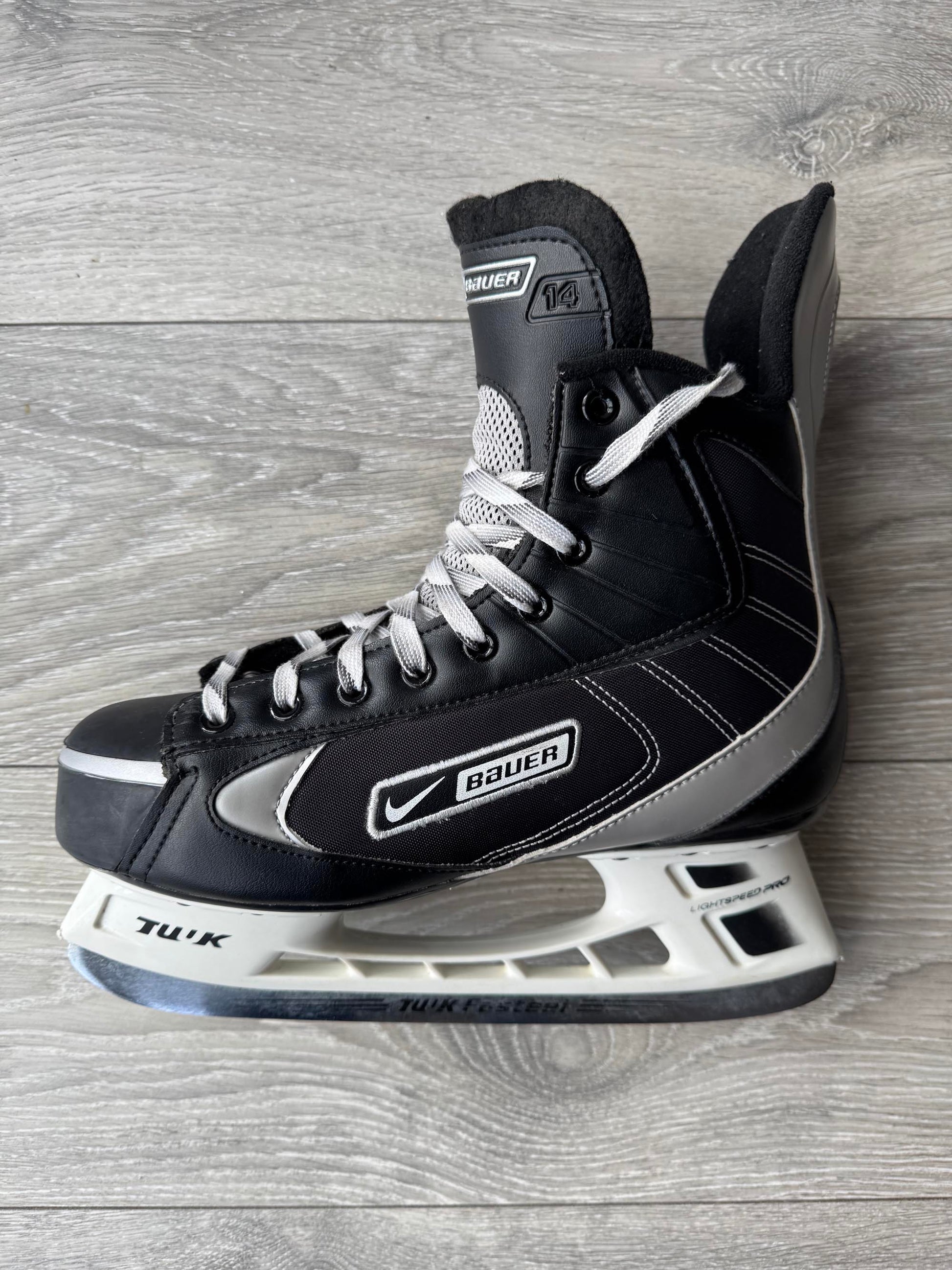 The iconic Nike Bauer Flexlite 14 is a stylish, comfortable boot that is very hard to find and highly sought after for quad skate conversions. They fit pretty much true to size.