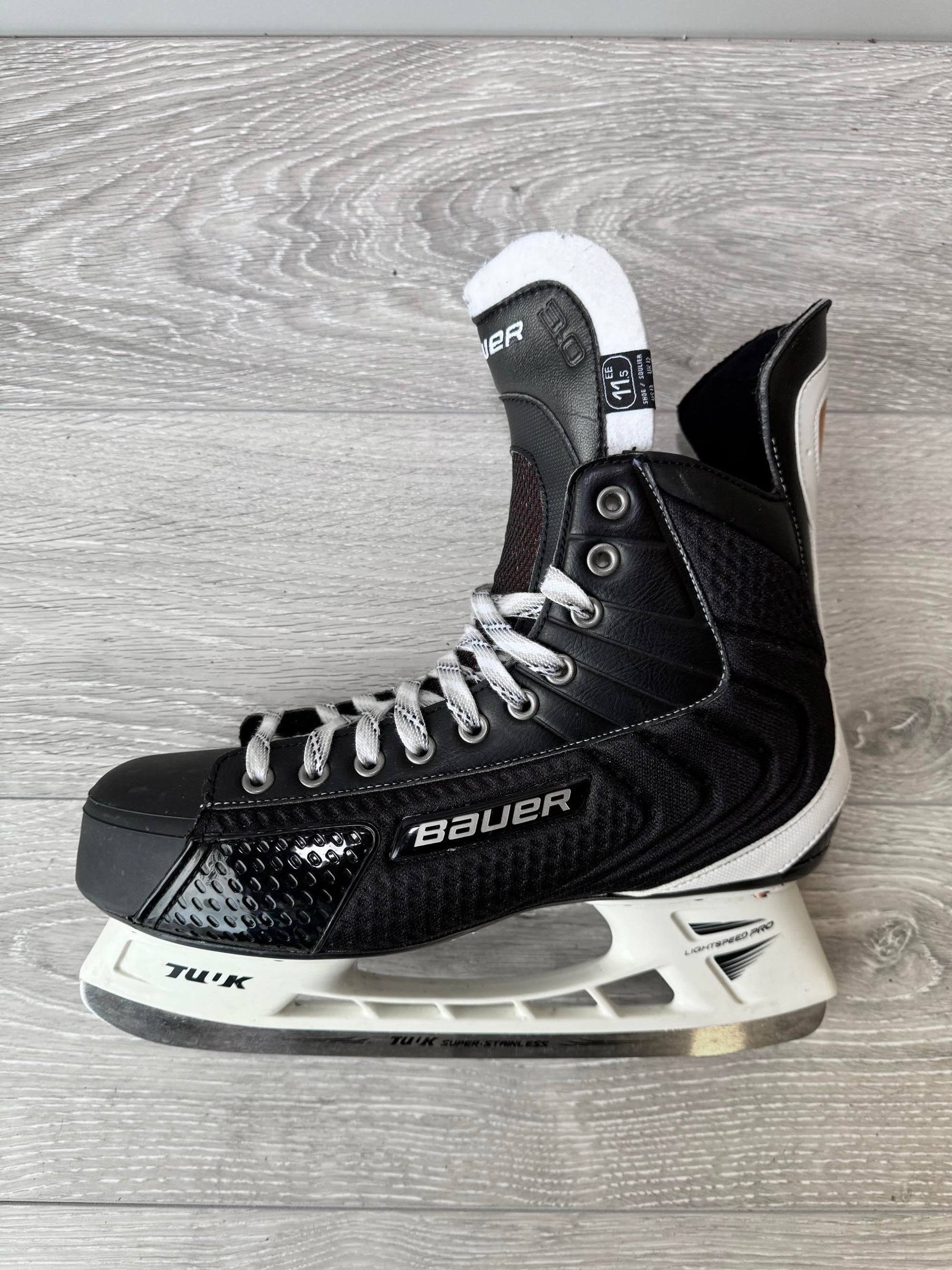 Please note this boot is Bauer Size 11.5 EE which is size 12 UK. If you are used to skating Bauer size 12 (12.5 uk) then these will fit half a size smaller.