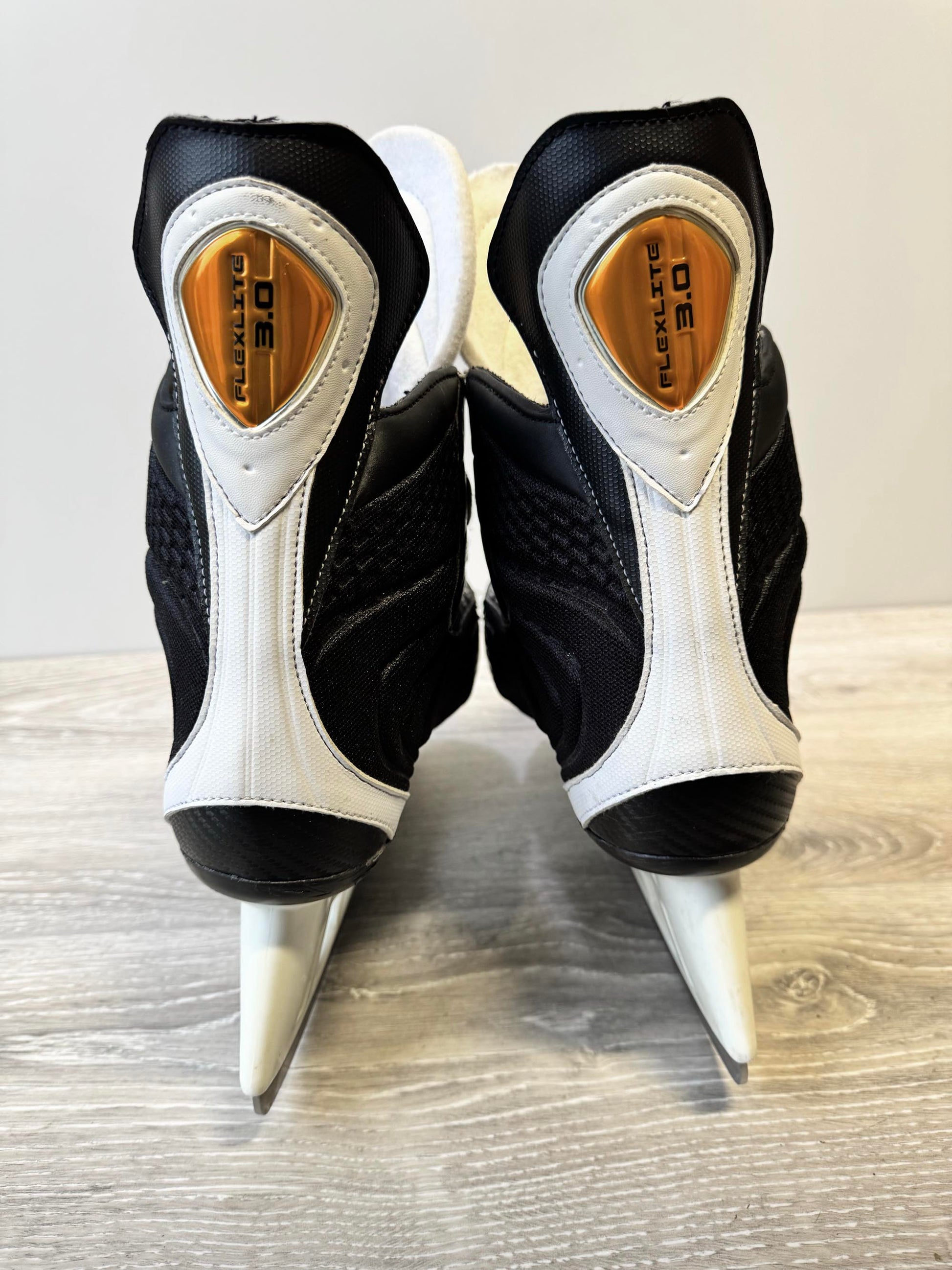 The Bauer Flexlite 3 is a lightweight, good looking, Hockey skate. They are highly sought after for quad skate conversions.