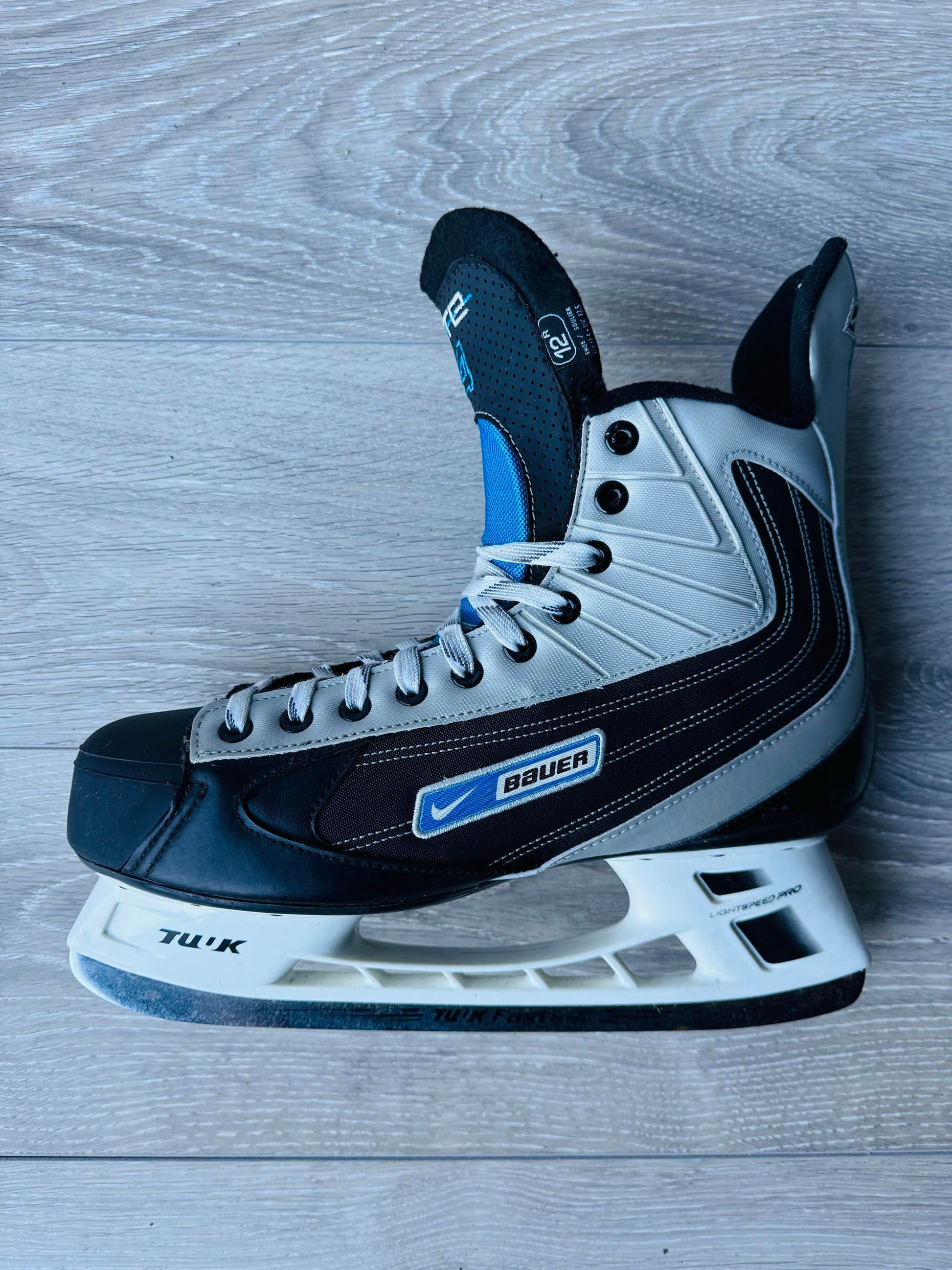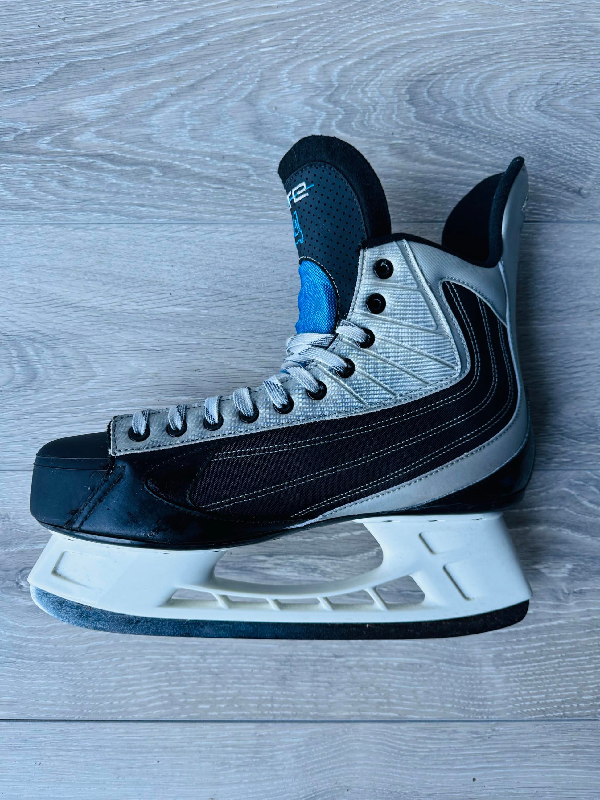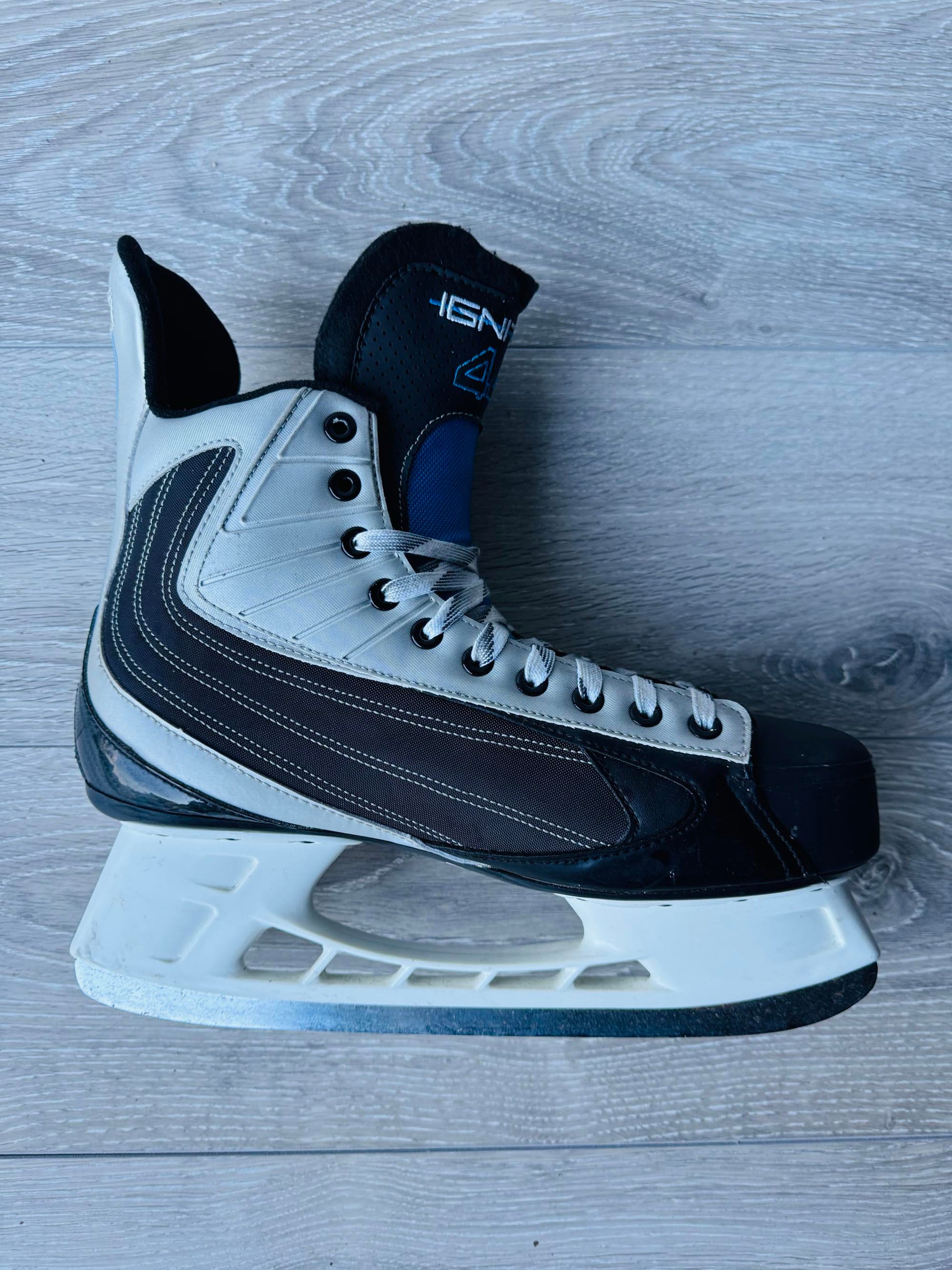The Nike Bauer Ignite 44 is a stylish, lightweight and comfortable hockey skate. Based on the flexlite design, fit and comfort, but with a unique blue and silver colourway, these skates are very rare and are a great choice for quad skate conversions.